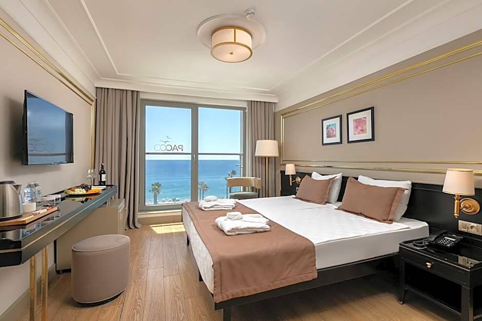 The air-conditioned double room offers a flat-screen TV with cable channels, soundproof walls, a mini-bar, a tea and coffee maker as well as sea views.